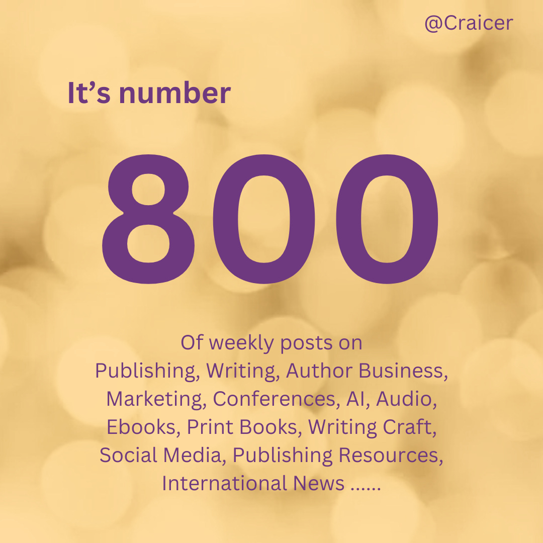 This is my 800th blog post. I feel like I have been talking publishing and writing forever. The blog has given me into some interesting insights into the publishing world. I think we can say that the experiment of the Kindle as not killed publishing. It is continually evolving. It has been interesting to see the rise of audiobooks and the changes that Indie Publishers have forced the traditional publishing houses to take. Staying nimble in this business is the key to success. I hope that you have learned along with me and that I have not bored you. A huge thanks to those who have been with me from the beginning. I’m still interested in this world, so I’ll keep going for a little while longer.